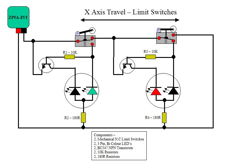 Does anyone have a circuit diagram to wire Limit switches in parallel with LED indication of actuation?
