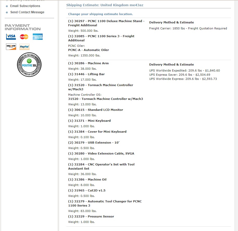the shipping without the Machine and deluxe stand comes to $2500+ the CNC Machine and Stand are going to be at least double that (call for quote) so I reckon $10,000 to ship that's more than half the cost of the machine.....LOL.....just to get it landed then there'll be her majesty adding another 12% import duty and 20% in VAT.........hahaha.....I reckon this $17,000 (£10,750) machine will end up costing another £6000 to ship + 12% inport duty + £2010 = £18760 then 20% VAT on that lot giving a grand total of £22,512.......you might be able to get away with the VAT as it's classed as Workshop Machinary but then you'll have to be buying through a Ltd Co.........Blimey!!!