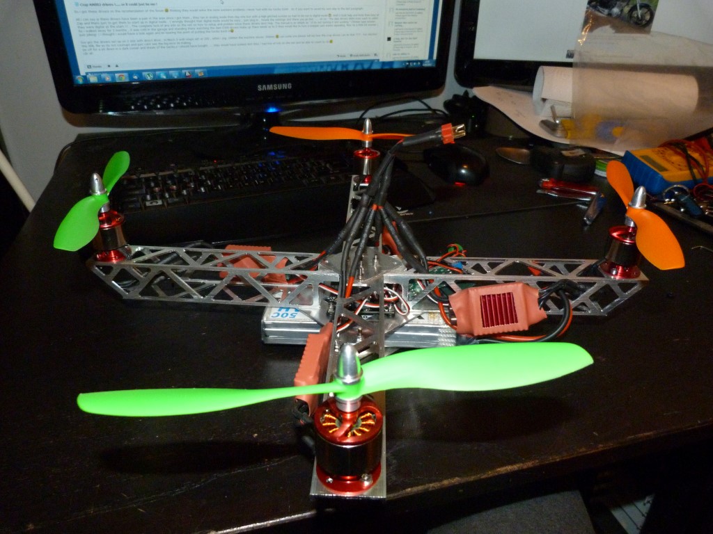 I also have a hexacopter which is one of these Flyduspider Hexacopter Frame Set which is really nice but a bit scary to fly and expensive in props if it all goes wrong.