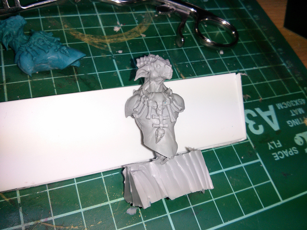 Resin cast of the torso (you can see the blue 3d print just behind it)