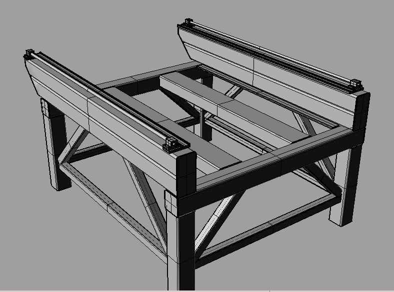 - the table would sit on 2 more rails same of similar size soldered. This should raise it for the cable guides and stiffen it, to avoid twisting . I am contemplating making a case there and all electronics mounted inside the base of the machine
