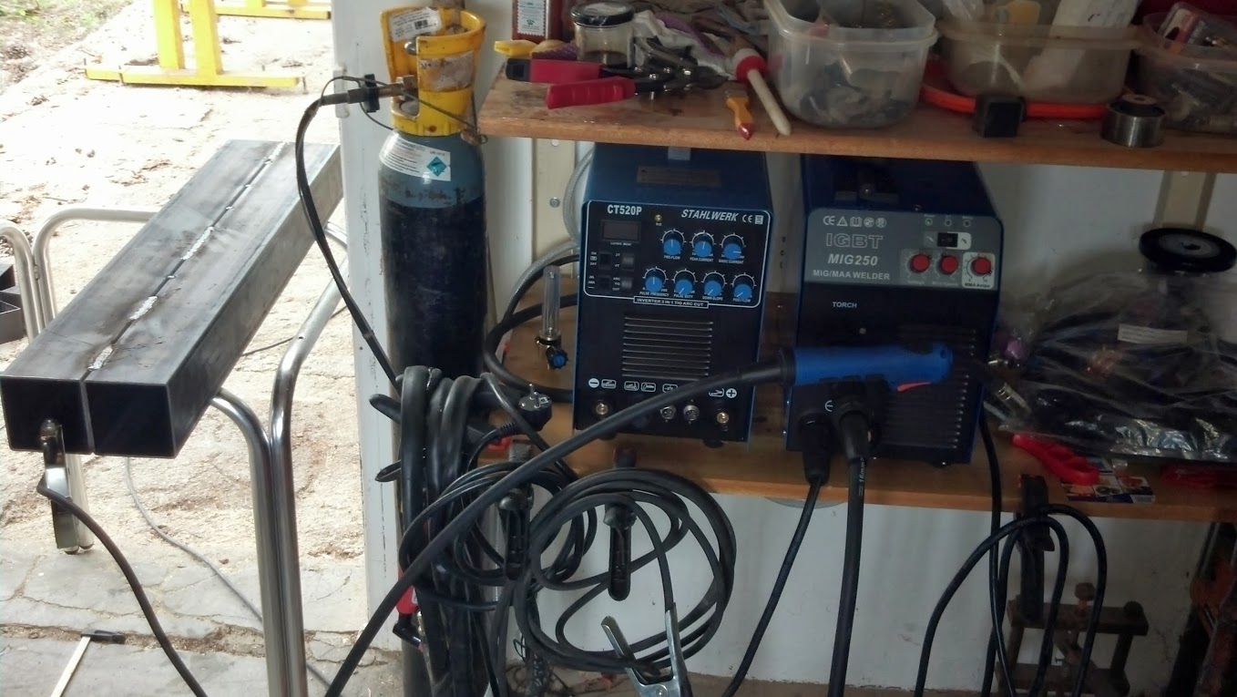 I decided to go with the MIG even as it seems that i do better looking welds with the arc welder. Yes, its strange but is so. Would have Tig-ed it but still no Argon bottle. maybe the Mig welds are more difficult to me due to the fact that i use beer gas. The penetration is perfect, before some days welded 10mm pieces without any problem. I was saving quite some time for the 2 machines, the combi cost 470 euro and the MIg 330eur with shipping to Spain. Both from fleabay. Needless to say the Mig was a great deal for the money.