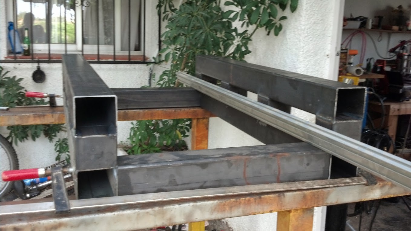 At the other place where i would buy the rest of the steel, i found some pieces of 100x100x4 box profile. And generally they will sell me everything cheaper and help me in their machine shop. So now i am contemplating soldering 2 pieces of 100x100 and making the gantry 100x200mm. That would change the design of the gantry widening 2cm, one at each side and making it higher by 6 cm.