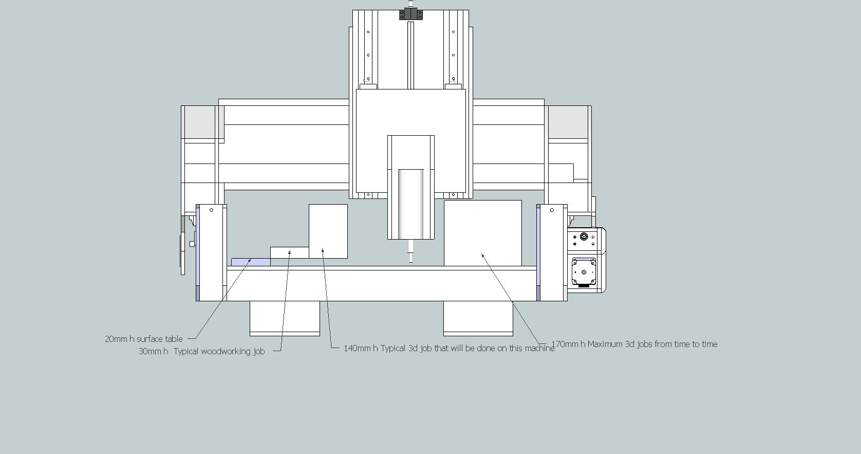4. Usual job size would be 800x400x160, hence that commands the gantry clearance and z design