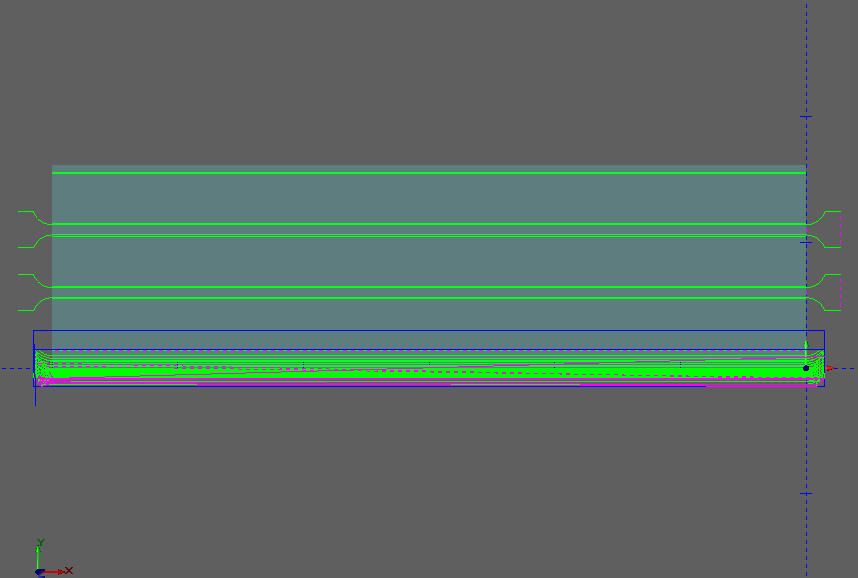 5 Use Pocket with outside edge lines set as dotted lines (allows the tool to pass the edge of the work) to make the operation Open Pocket for the two middle slots.