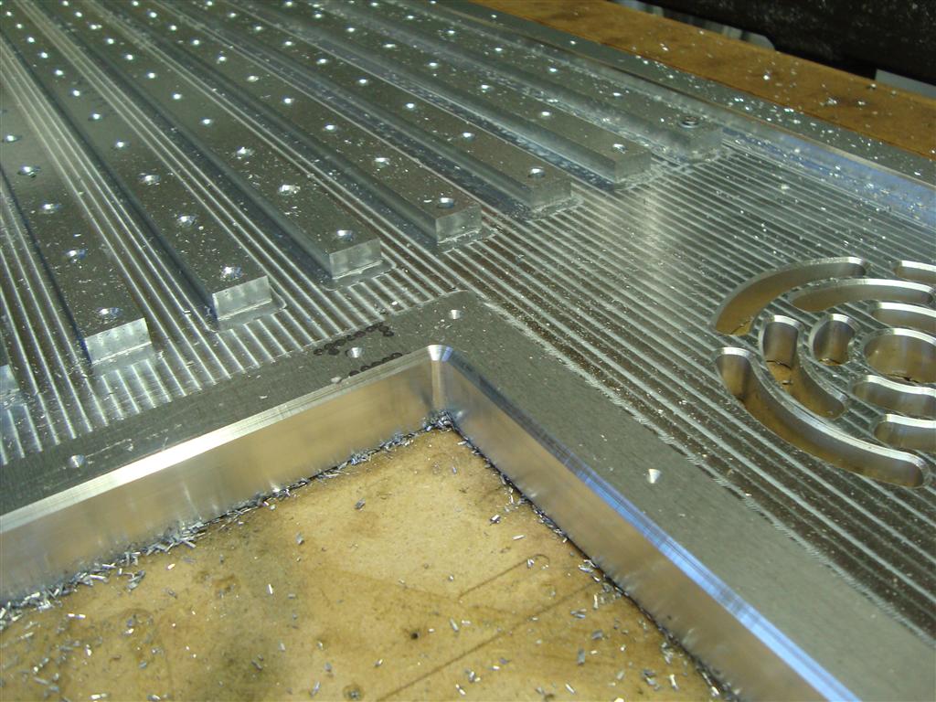 I've still not measured, but I'm pretty sure your machine is stronger than my 'old' one which cut the parts above (and below), so unless you have big problems with resonance you should be able to get similar results. Perhaps MDF is worth a shot? That's not to say you can't get a good finished clamping rigidly to aluminium, it just takes a bit more care/luck setting the feedrates, e.g: