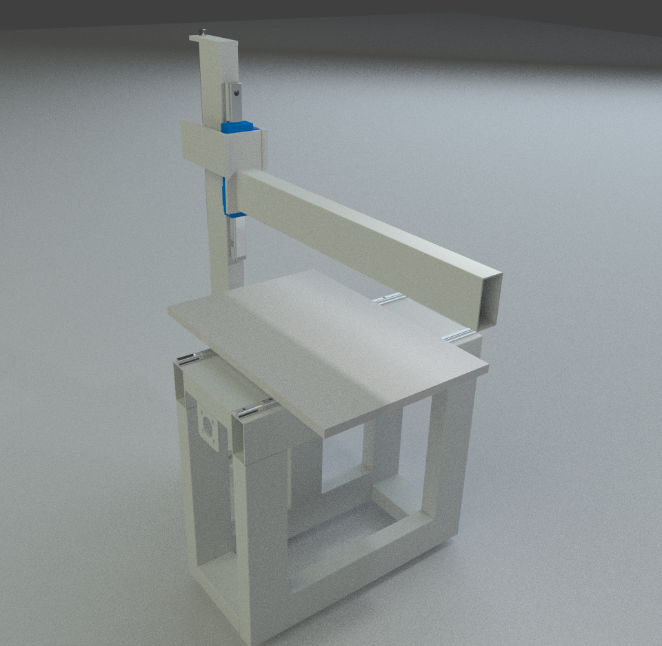 The cantilever x-axis can move up and down in the Z to allow for different work heights and then laser head optics will also be adjustable for fine tuning.