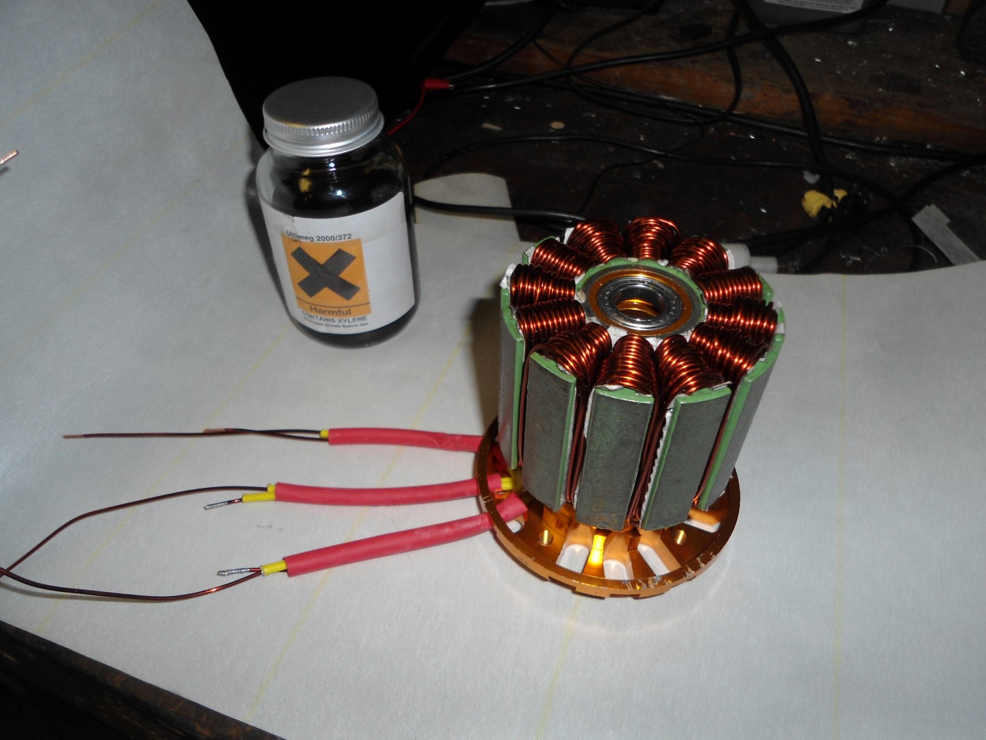I finished rewinding the motor the day before yesterday, so here it is ready to varnish: