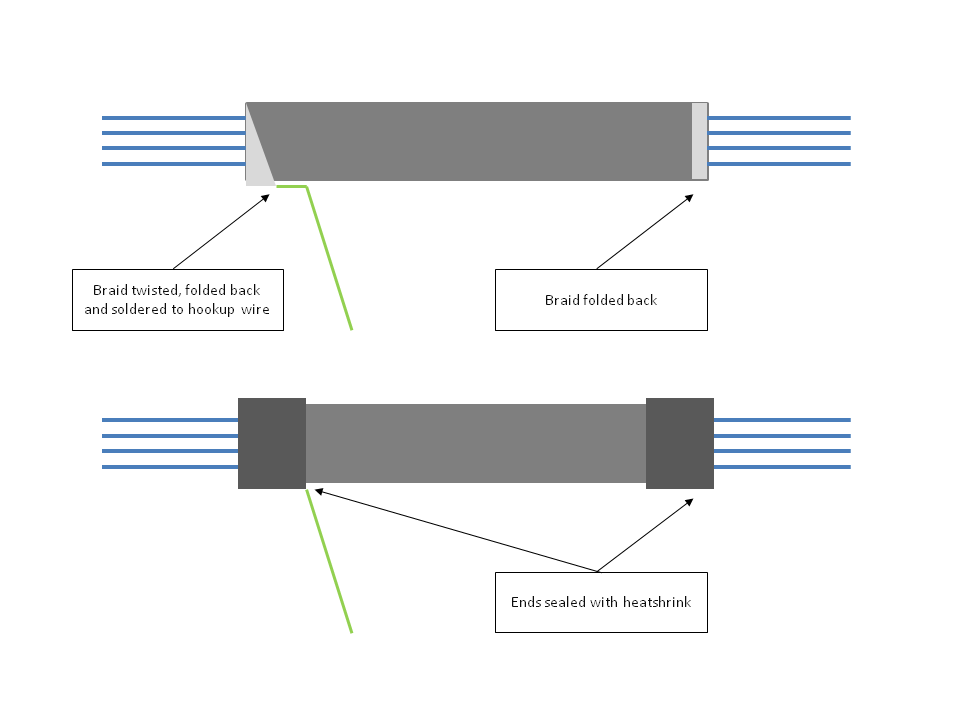 # Always put shrink wrap on the terminated ends and any connections of the braided shield wire of CY cable as strands of braids can come lose and cause shorts.
