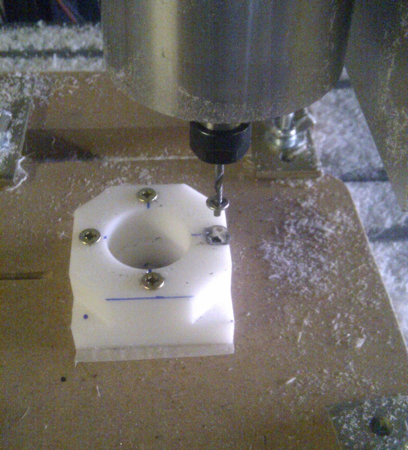 Somewhat risky for a newb like me to have metal screws in the work area, but I took a chance. All went well until I hit the z-axis limit switches (piss poor planning) in the middle of my job. In the confusion I did the same as before, started the job mid program but I'd done a goto zero. I should have noticed it was heading off inthe wrong direction but I wasn't ready ready to pounce onthe stop button.