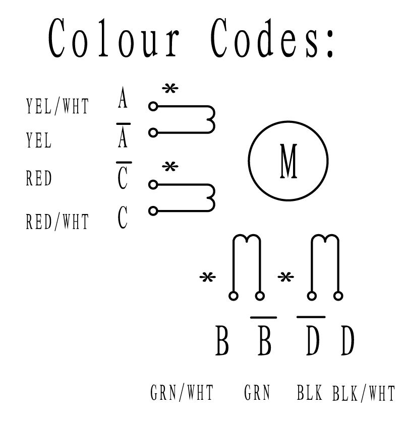 However the Driver datasheed does not give colour codes http://www.motioncontrolproducts.com...ing-driver.pdf