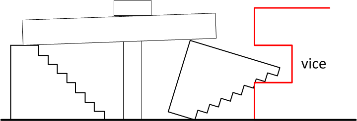 You could use a stepped block, I'd hazard a guess they were suggesting something like this, though you'd need to experiment and you may need something under the back edge of the upturned stepped block to force it to rotate down onto the vice.