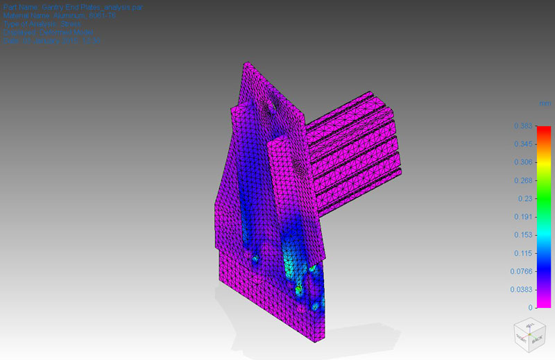 Looking very nice! Wood and aluminium together is just sooo easy on the eye :-) Interesting comparison of the wood and steel, just keep in mind that the force in the direction you simulated is actually very small in gantry routers. Because the cutter is located relatively far from the gantry the force on the gantry is more rotational rather than straight in Z and Y, due to the leverage created by that offset. Would be interesting to see the same comparison with that in mind.