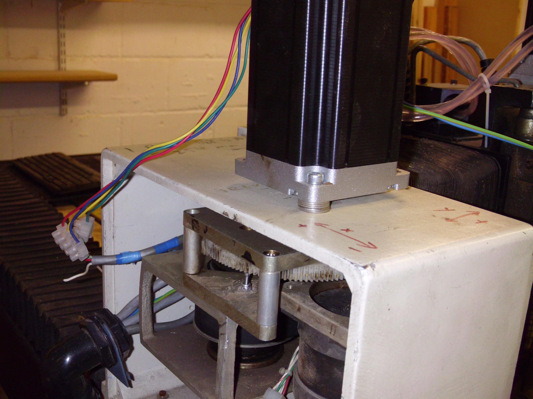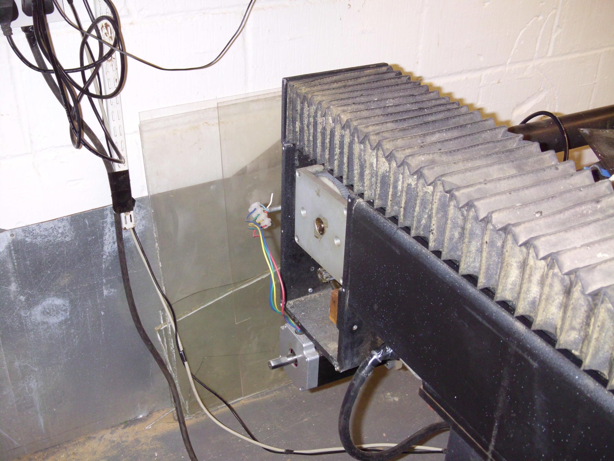 I have recently started to build a cnc using a Gerber system 48 frame. This frame was from ebay and has got its own quirks and has been bastardized from a previous owner. I have bought stepper motors and abreakout board from ebay specifics below. I have the stepper motors on and have setup a box under one side of the cnc machine where everything runs back to.