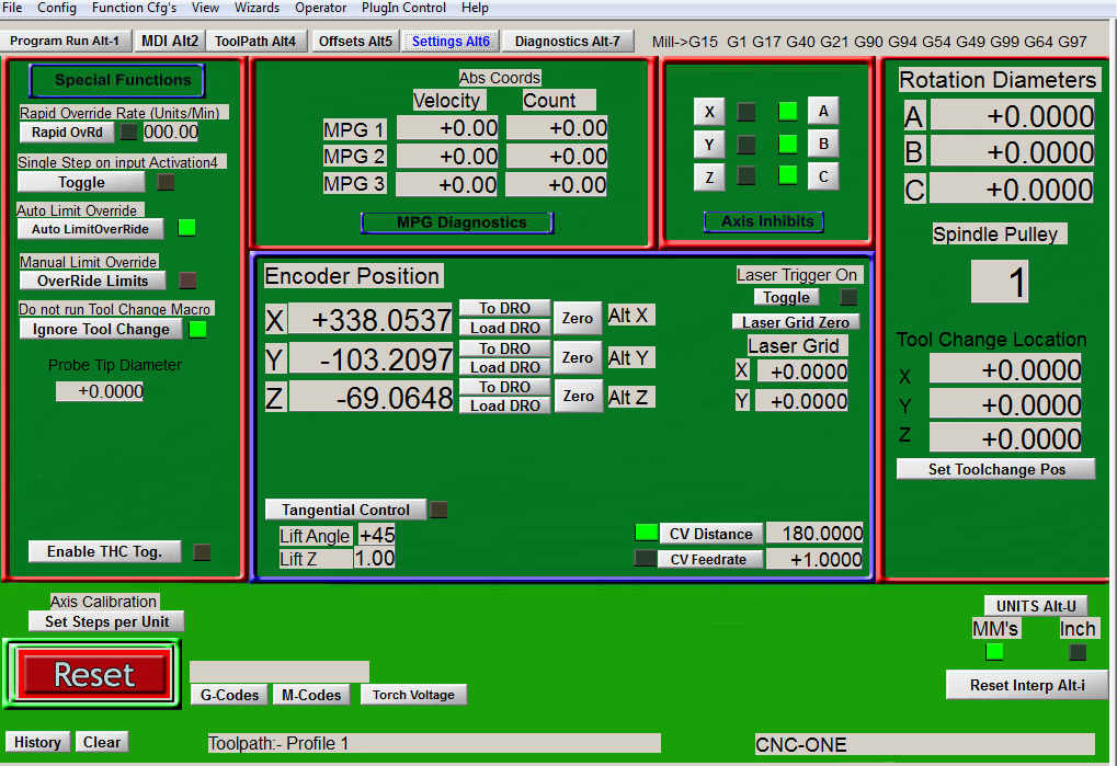 Hi Jazz thank you for the fast response, I input the g64 and checked aspire and I saved the toolpath selecting 'mach2/3 arcs (mm)'. I still got the stuttering movement issue? I've uploaded the setting pages below if that gives a better insight to the issue.