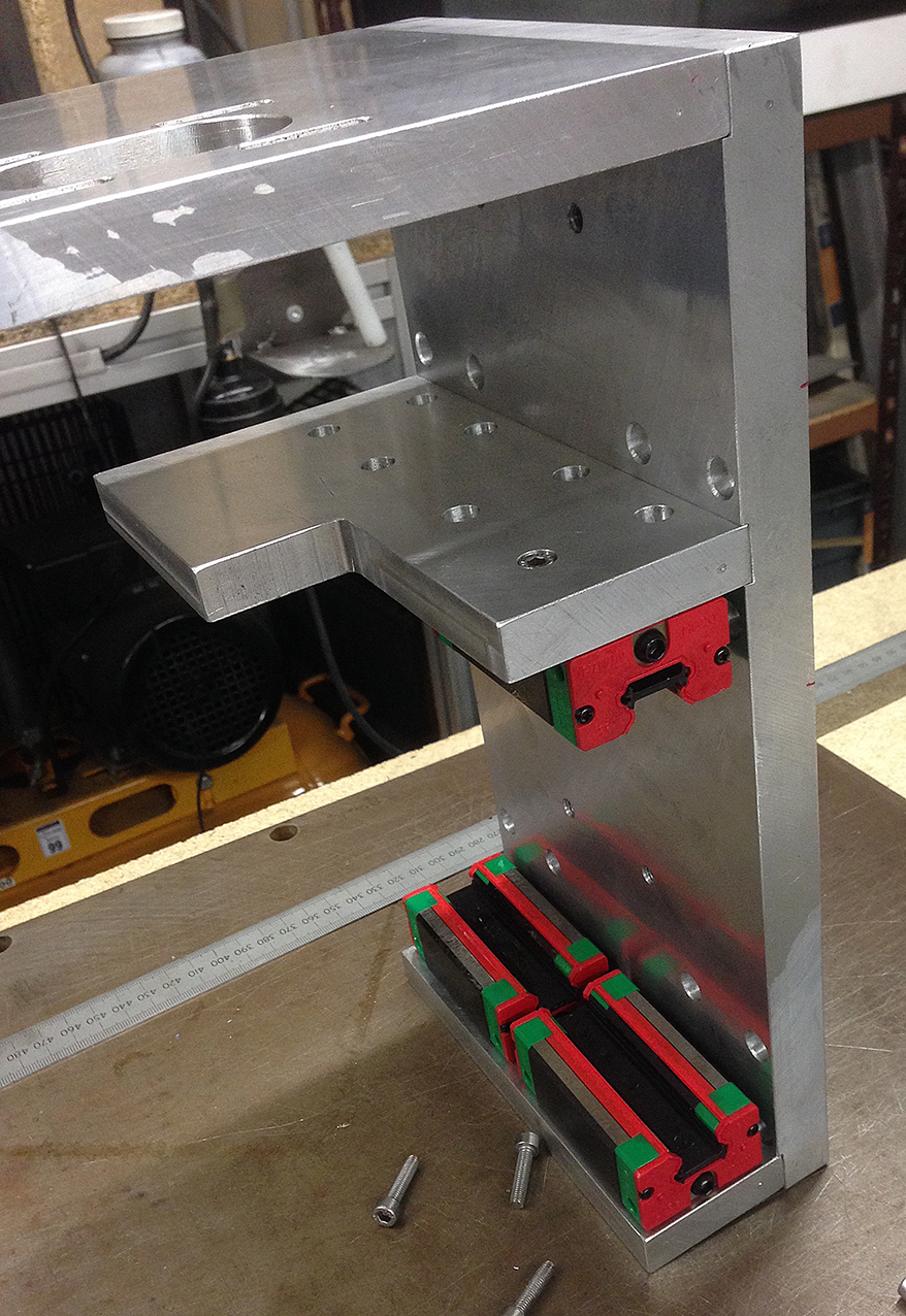 The Z front plate and the very front plate where the tool mounts are 20mm thick and needed 7.5mm taken out of each to align the rails and screw. I don't feel that will make any difference at all to strength - the tool mount plate is also reinforced by having the linear rails bolted to the back of it. The rear Z plate is has the Z axis linear carriages aligned directly with the support plates (shown in the pic) for the X axis linear carriages - the forces are transferred directly from Z to X.