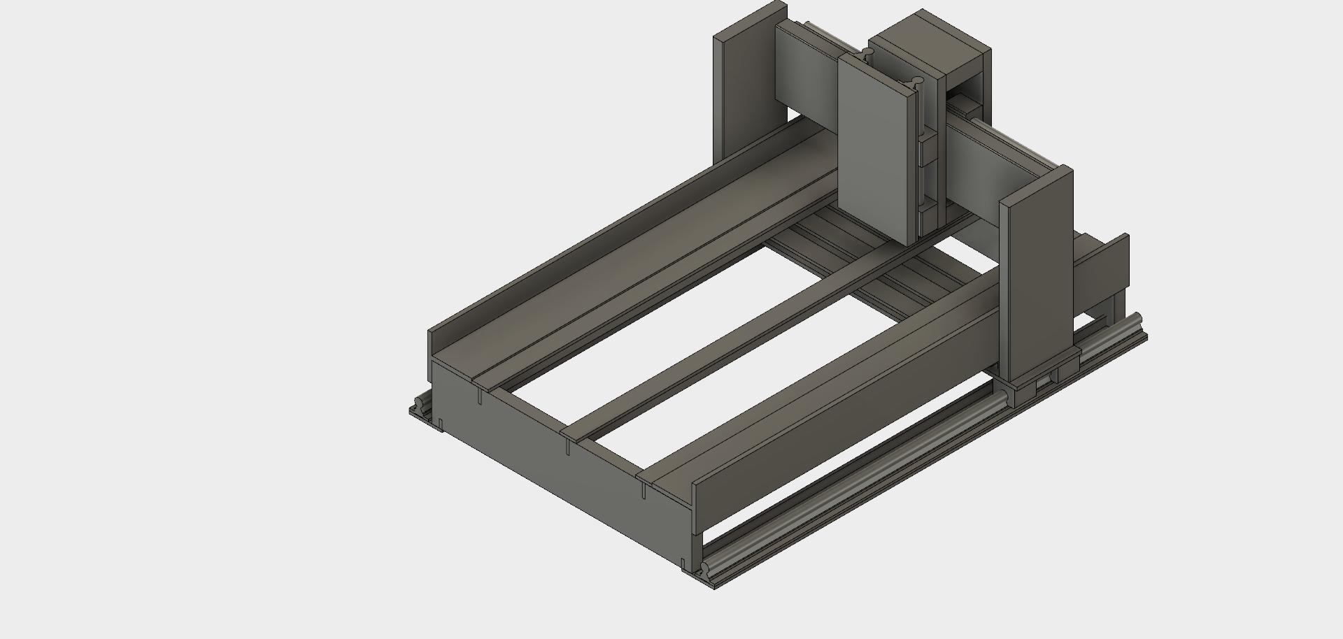Had a quick look at design and Knocked up version 2 this is a draft few peices omitted till I collect stock material acquired today like side of gantry just turned original on side for now and nor bothered actually mating same to bearings more for concept than actual design, also brackets mounts for screws, motors etc missing.