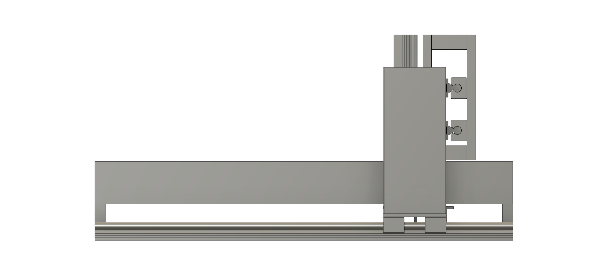 Then gantry again made from tube or profile sits directly onto the bearings giving a very strong and simple setup. To give you some space back make bearing plates that offset the gantry back slightly and mount the rails on top n bottom. Put ballscrew on backside with Z axis top bearing plate extending back so can connect with ballnut.