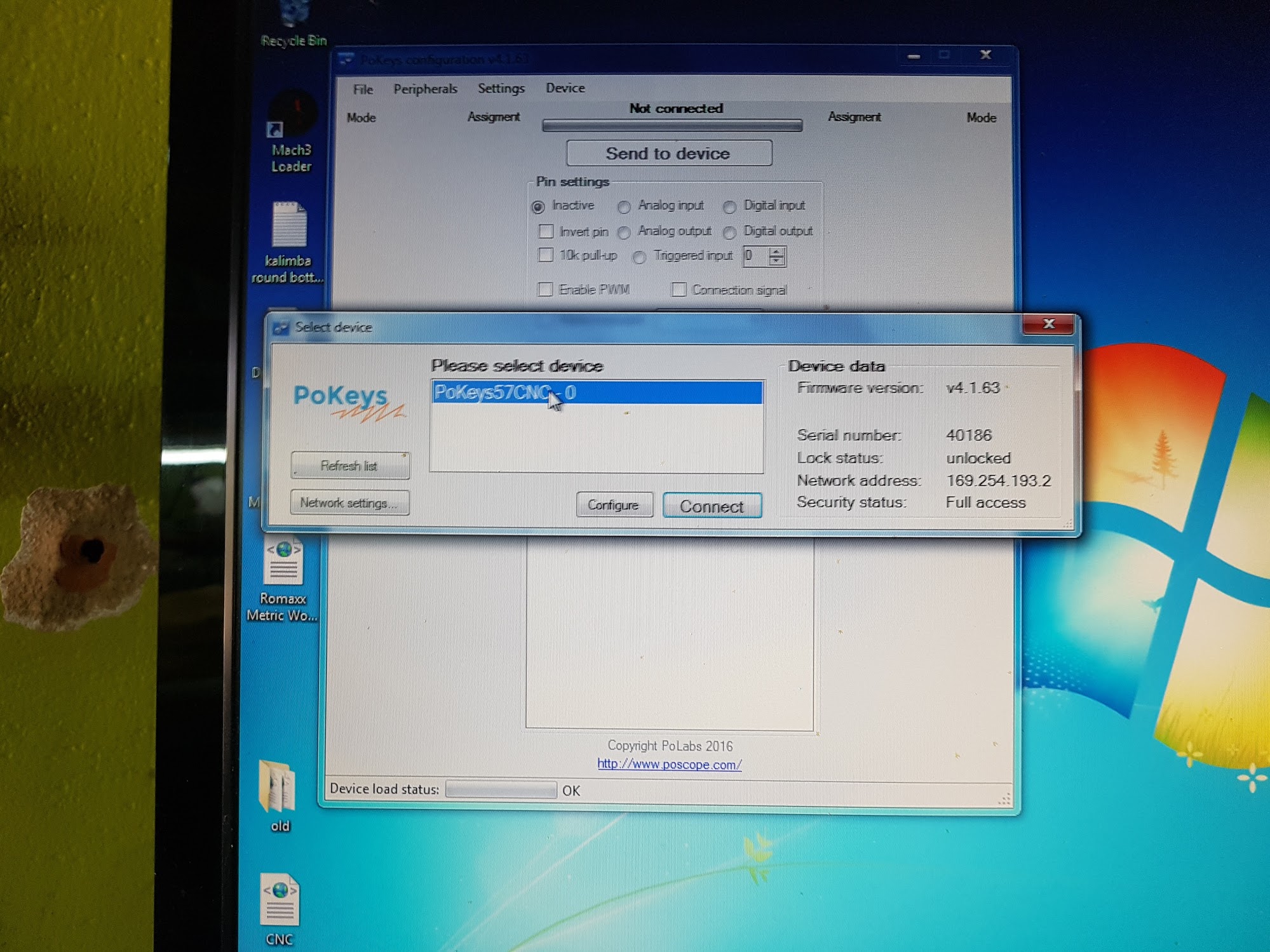Pokeys 57CNC+mach3. All fresh install, latest all before a couple of months. Nothing else on PC. Second network card disabled from windows.