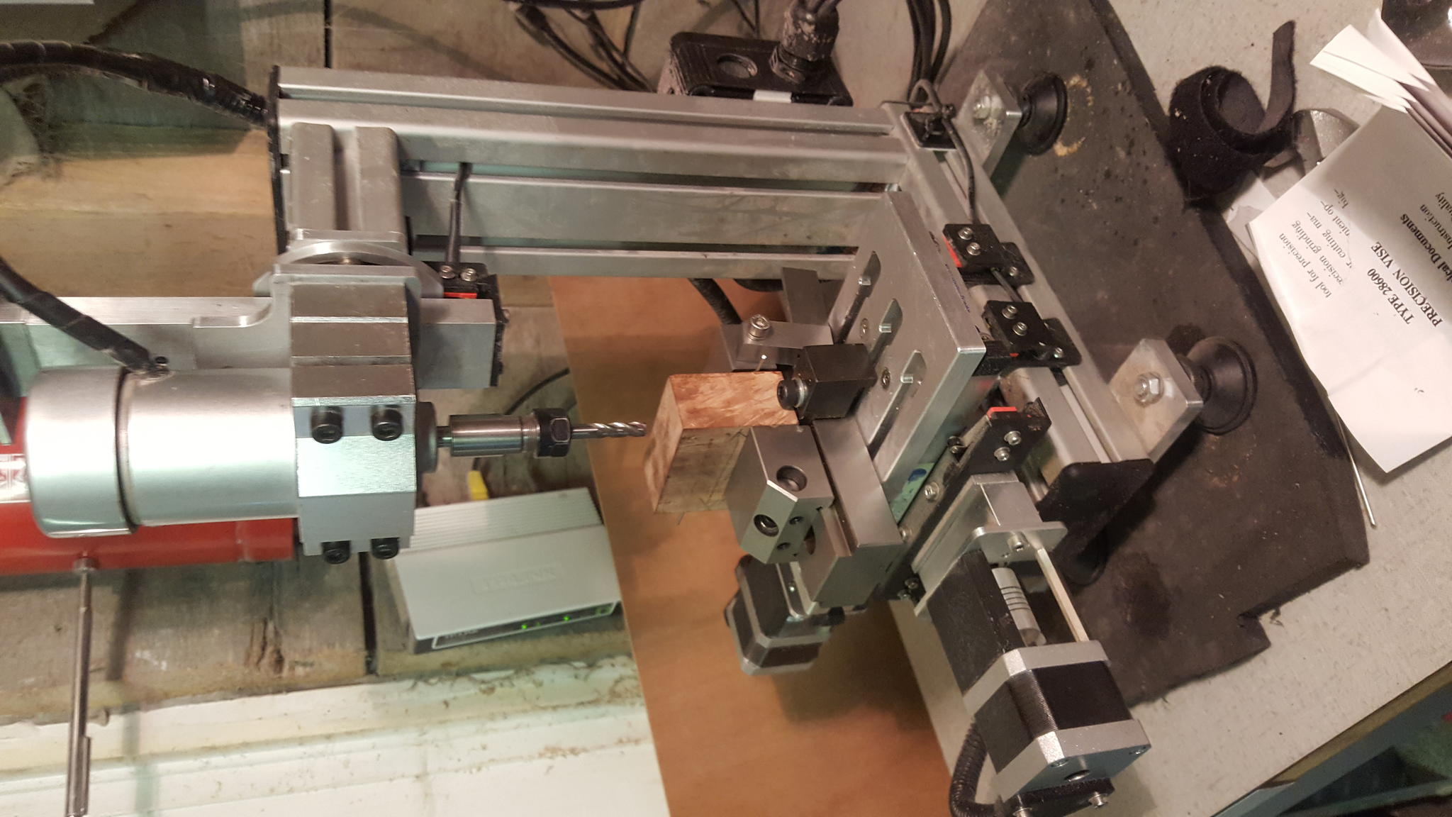 I'll post a picture below. its a great little machine and very accurate, someone custom made it from Unislide dovetail slides and they are extremely accurate. Most of what I make is no bigger than 50 x 30 x 100 mm so a small machine is all I need as long as it has the repeatably. I run mine on linuxcnc which Ive found fantastic and does everything ive needed it to.