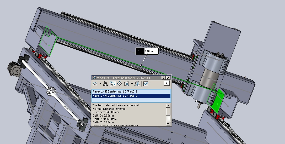 The best guestimate i have for the total moving weight of the gantry is about 65-70KG