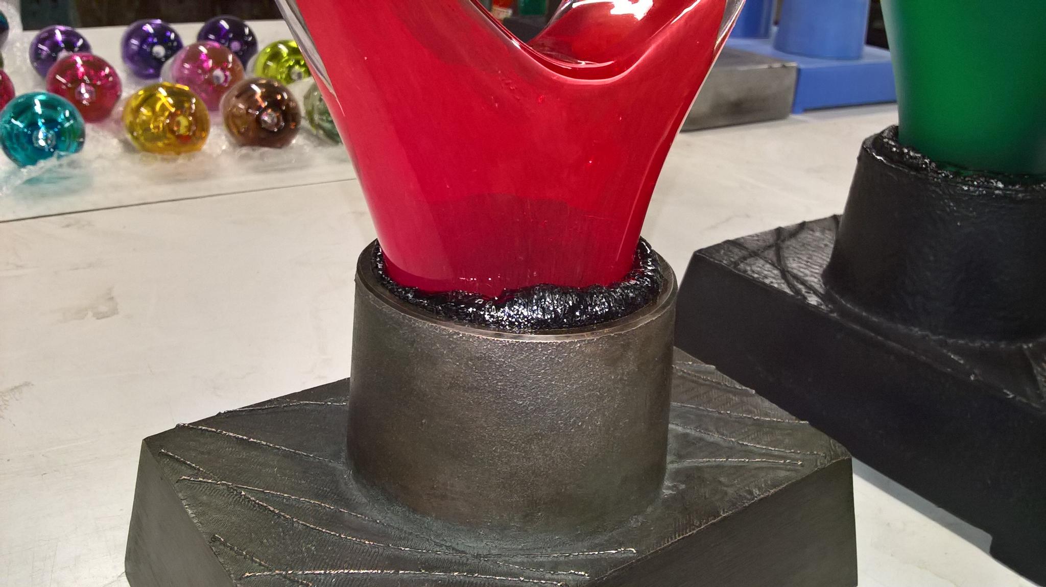 The pictures attached gives you an idea of the bases, but one pic was of a failure of the resin embedding of the glass, so doesn't show the base underneath. The second one was a brief test of the lamp.
