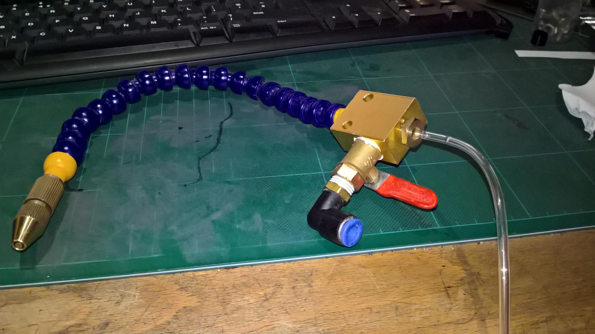I took an interest in the thread about mist cooling and I thought that a stepper driven pump, controlled by an Arduino, together with a solenoid operated air valve could give a system that would dispense air, liquid or a mist (with control of the liquid content) using a mister spray as in pic 4