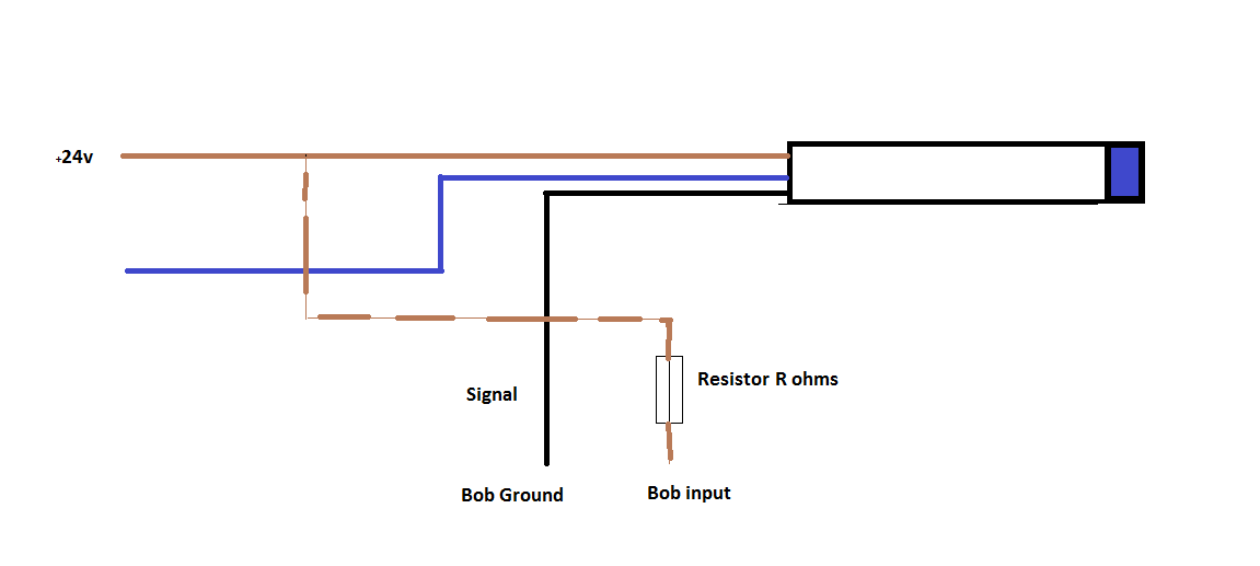 I am using NPN Proximity switches from here and a 5v BOB from Zapp Automation . I fitted a 2.4k ohm resistor between the black signal wire and the blue (-ve line) and connected up to a 24v dc power supply. When the switch is open, the voltage between the signal wire and the blue line is 4.5v ok I think for the input to the BOB. When the switch is closed, it drops to 0.7v - measured using a DMM and the LED on the back lights up. I connect the black wire to pin 10 of the BOB and the blue wire to the GND. When I activate the switch, the LED does'nt light and nothing is detected via the diagnostic screen of MACH3. And yes the port & pins is set for the Home to pin 10.