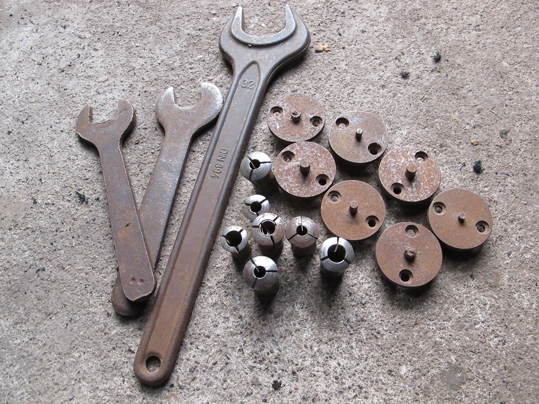 Spanners, collets and router pins to get you started. As you can see there is also a spare spindle holder and router bed. If you are clever enough there are almost enough parts here to get 2 complete routers for the price of 1.
