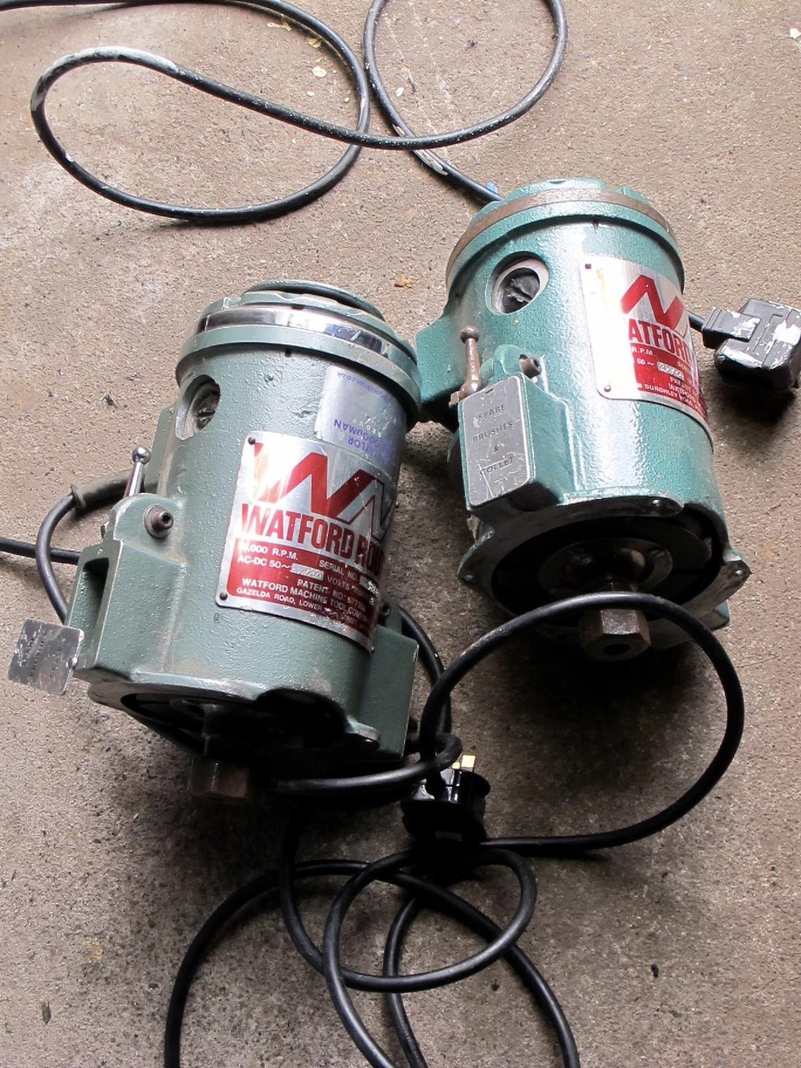 Anyone viewing this will be familiar with the quality of these units, as good as Wadkin at a fraction of the cost. Surplus to requirements now so must go to a good home. There are 4 spindles altogether, one mounted on the frame, 2 others in working order and one spare, might be of use. There are a spare set of carbon brushes in one of the spindles in a housing to hold spare brushes.