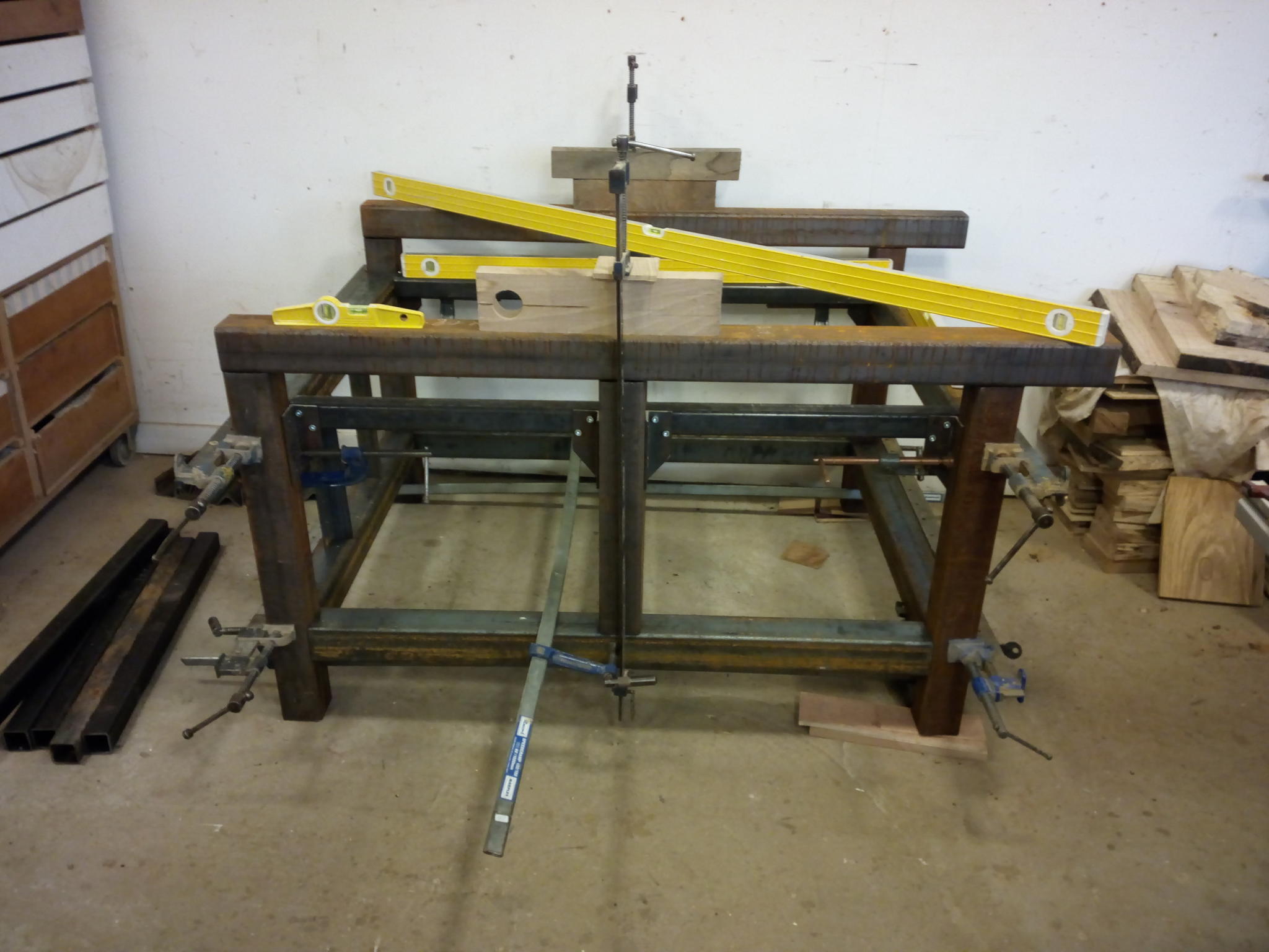 Cheeking and marking out the moving bed and brackets. Its going to move down by 100mm amounts. I can not think I would want to move it in lesser amounts than multiples of 100mm, unless you people out there no better? (Z axis should have about 220mm travel.)