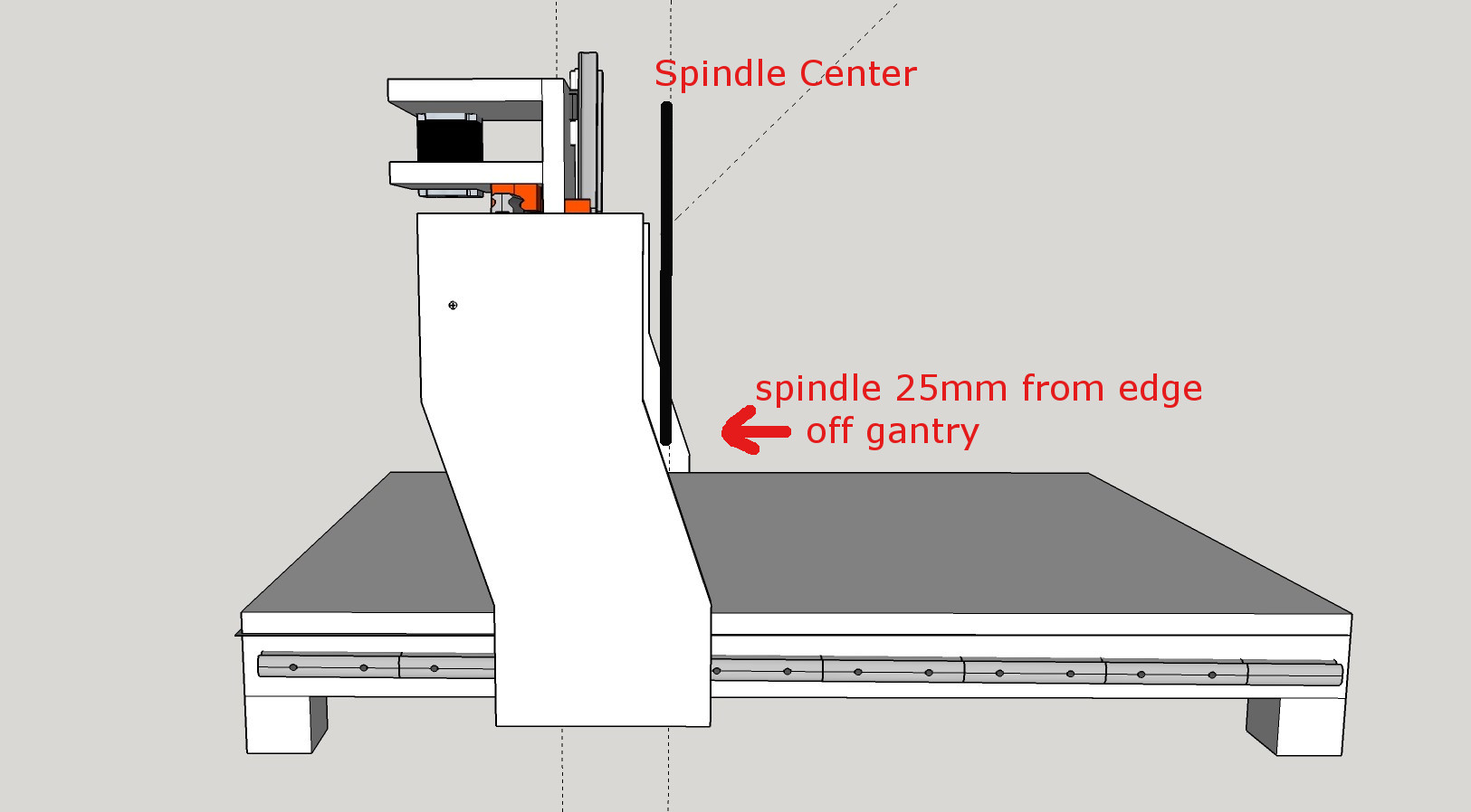 Sorry I posted the wrong pics here are the ones I should have posted.If my calculations are correct the spindle should be 25mm from the edge off the front off the gantry