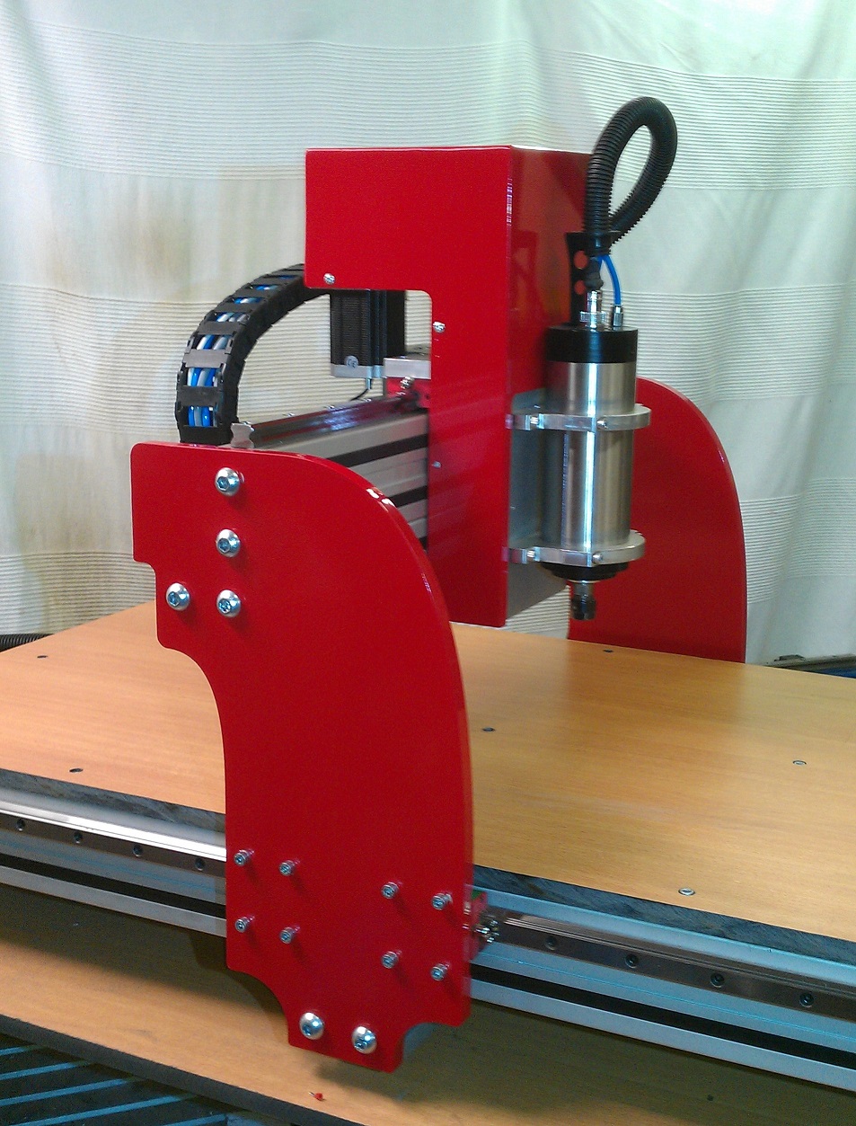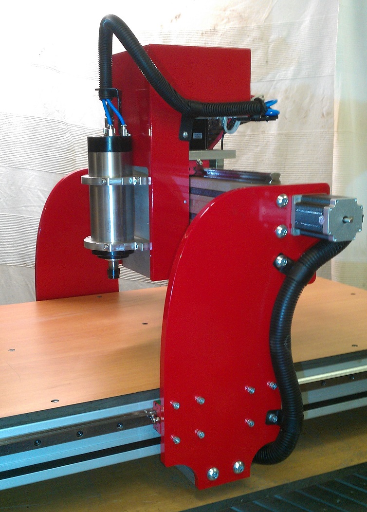 Both machines will happily cut aluminium with light cuts, infact the very first Job the customer cut was 4 x aluminium plates for where the machine fastens to the base frame which you can just see on one of pics where machine meets frame.(I only supplied the machine)