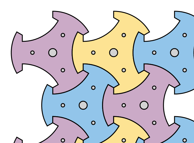 This image shows trispokedovetiles with CIRCLE = 130% - in other words the length of the diameter of the (partially drawn) circles is 1.3 times the maximal diameter of the (partially drawn) hexagons.