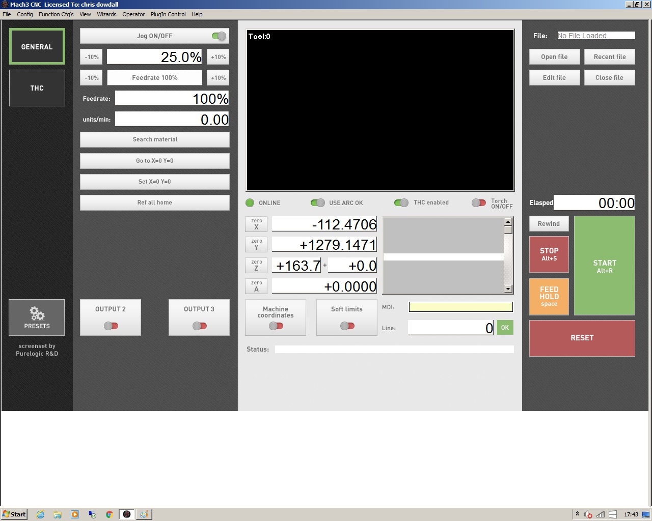 Do you have yours set to spindle, thc on thc up thc down etc etc as these are all the scenarios i am looking at and everyone seems to have a different solution but if you have a hypertherm 45 at least we have this in common...