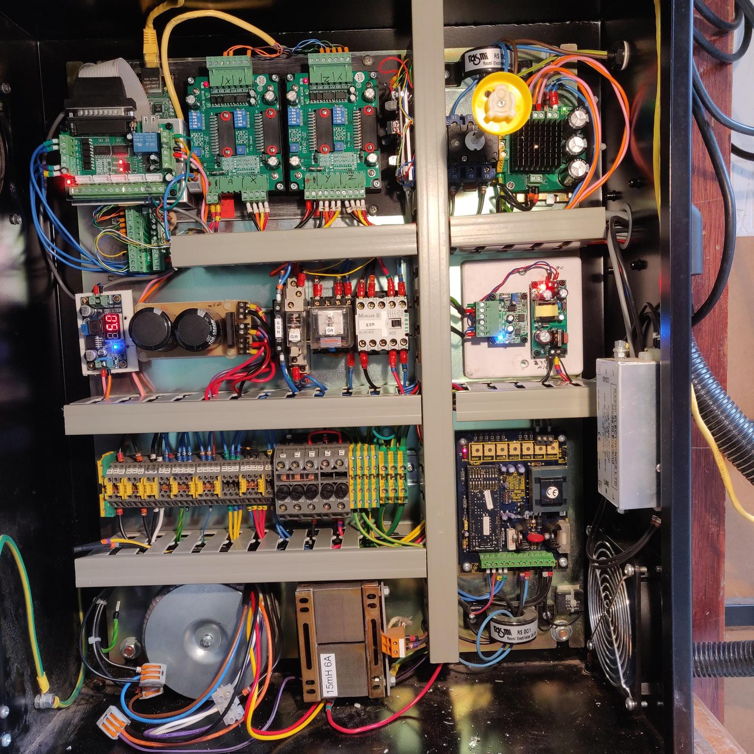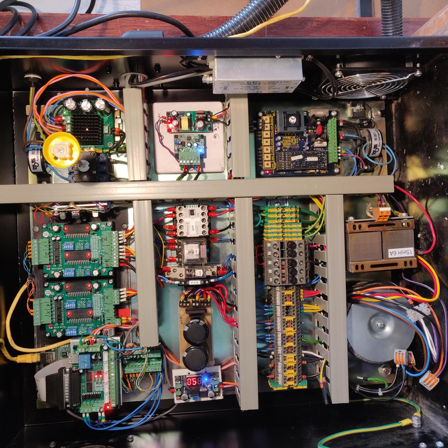 I have the RMHV controller hooked up to the EM806 drives connected to the original steppers. I have also connected the home switches. I have used the original power supply and relay board for this.