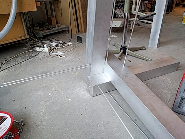 The first bonding session for the gantry beam, using bog standard epoxy with cotton fibers