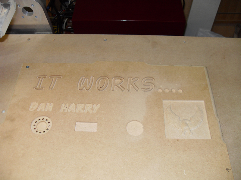 Totally enjoyed it from beginning to end (not that its complete yet), I got up this morning at 7.45am and was in the workshop at 7.50am with a cup of coffee adding the finishing touch's, at 9.30am I started it up and milled some writing on a piece of MDF with a big smile on my face. Something really rewarding about building a machine and seeing it work for the first time.