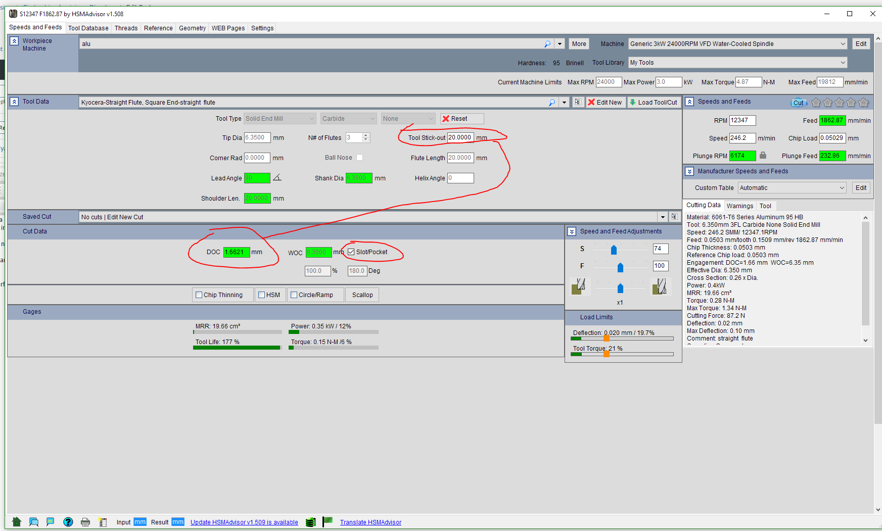 If i am cutting an external profile in alloy i can go full depth cut and cut with the side of the cutter and cut 1mm off the profile at 3000mm/ min with coolant on.