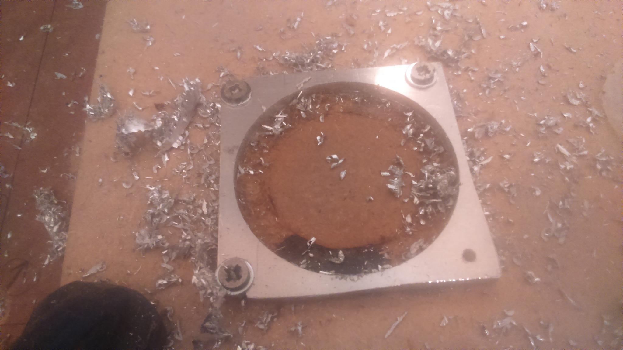 All tools got hot but the final profiling end mill was the one that got REALLY hot. Getting air connected will be easy enough as pipe, parts & 3 nozzles at spindle are setup but think I might have to start work on the mist setup sooner rather than later. Could I get away with air blast with manual spray of WD40 for now with smaller runs? Thanks.Last edited by examorph; 29-01-2017 at 01:55 PM.