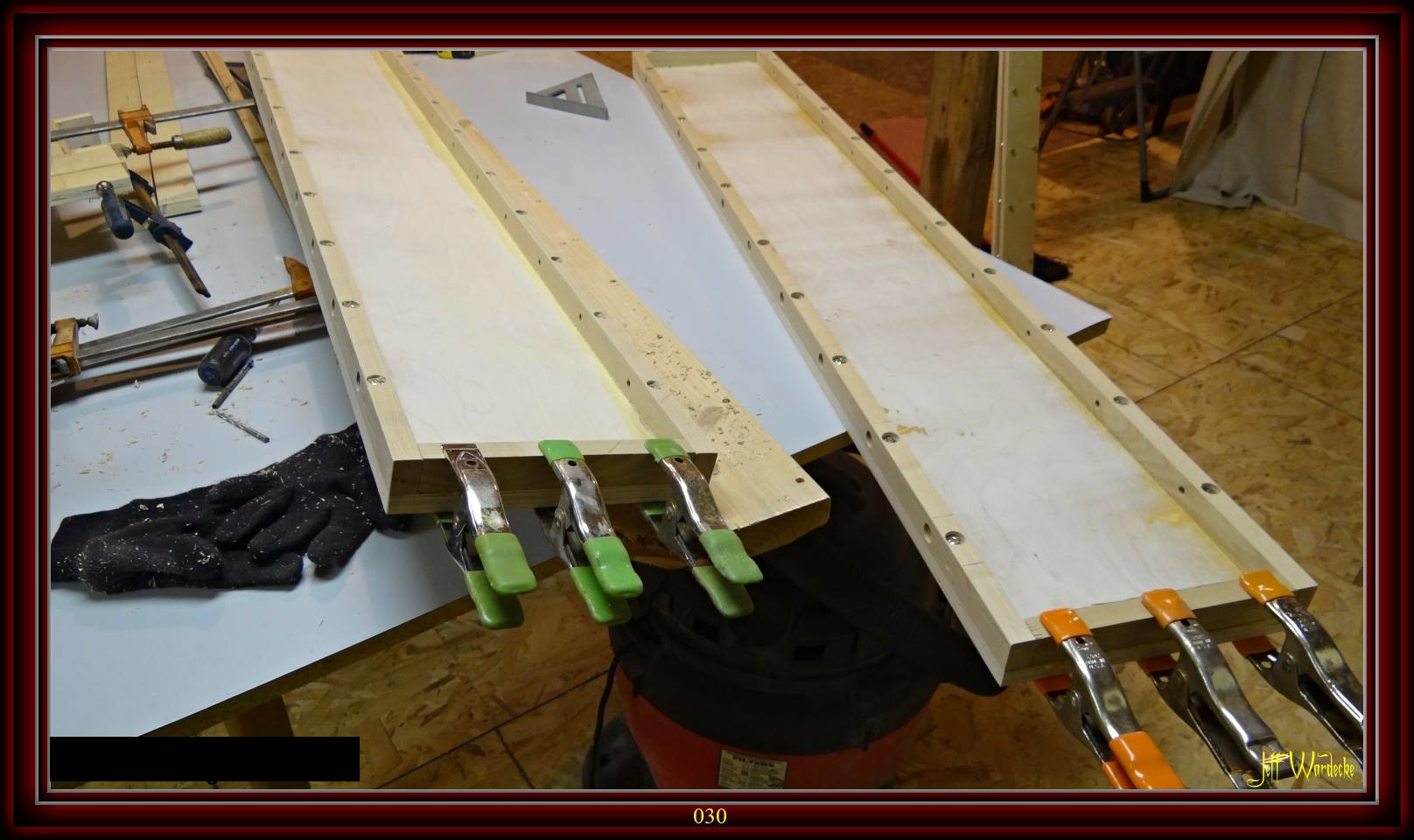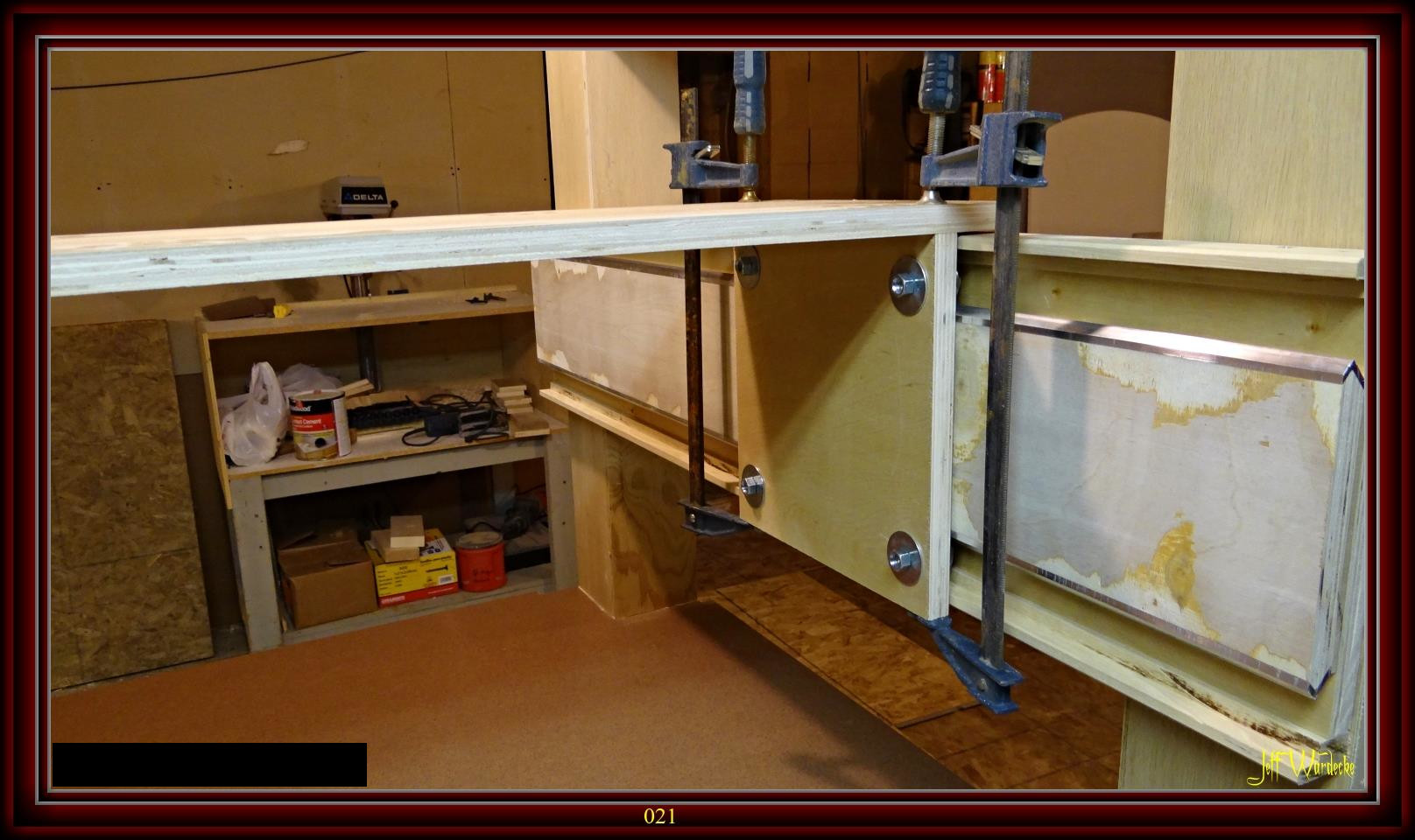 Choose to 45 the plywood for the rails and epoxy the aluminum channel instead of just laying it horizontal with one edge up and one down. felt there was more surface area.