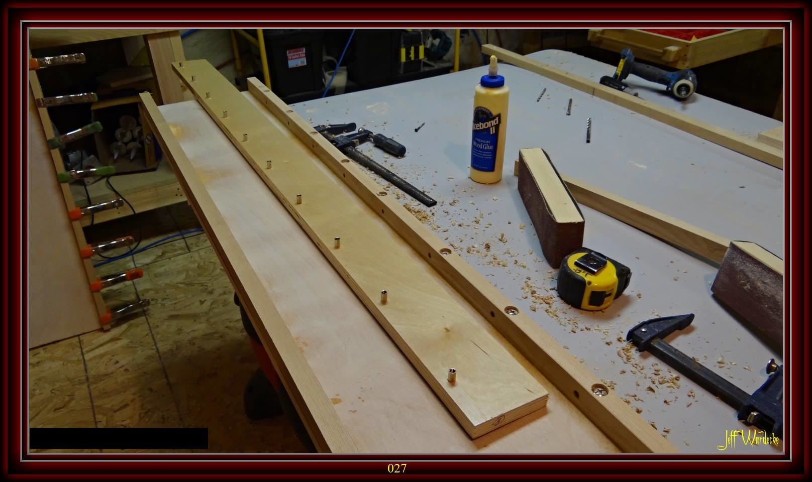 Finished the duct holes, glued and screwed down plus added 1×2’s the the main supports to flush em up with the oak plywood banding and leaving a channel to run wires for stepper motors limit switches and lights in the top.