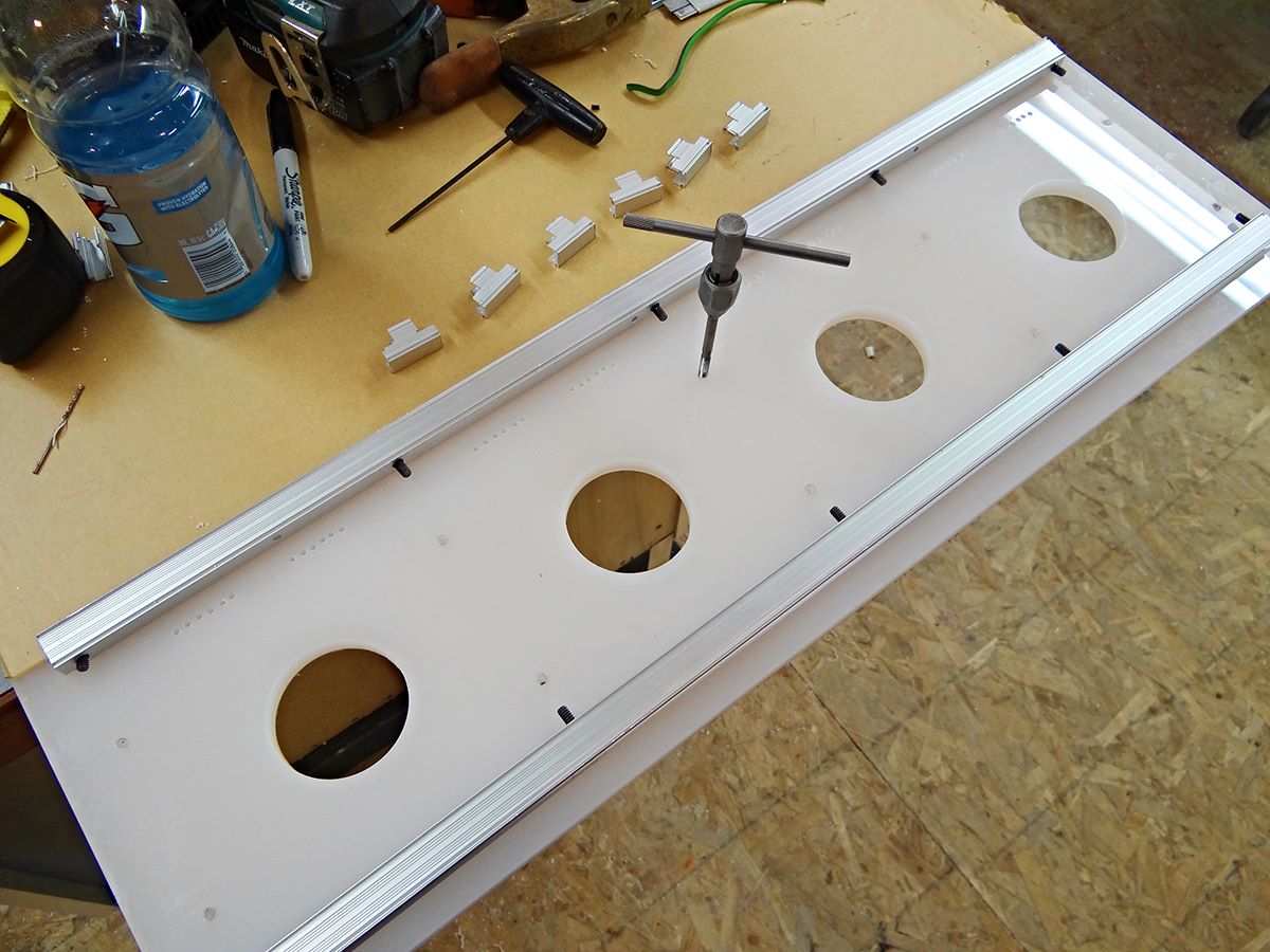 Top of the table getting the holes cut. sure would be nice to have a cnc router to do this.