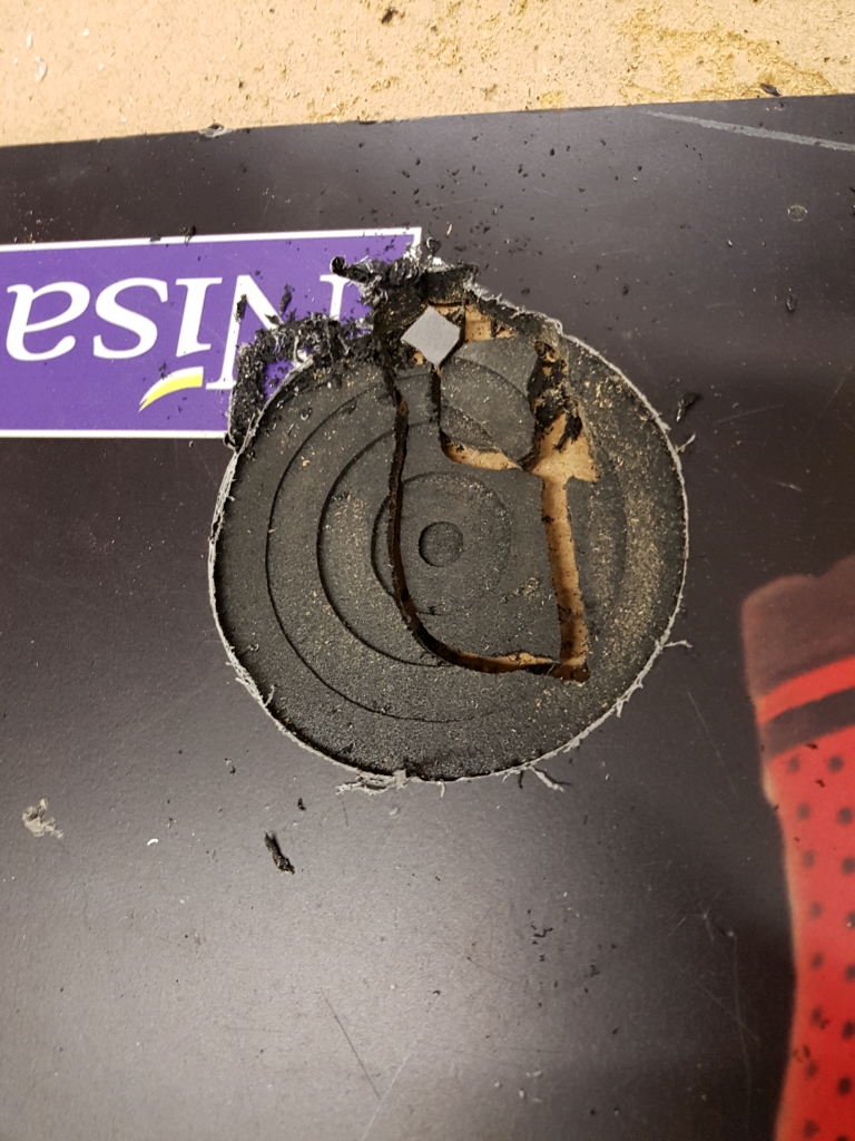 Anyway, everything looked file until it got to the outer circle (circle 1), when it did this (I set it to do 11mm, so all the way through)!