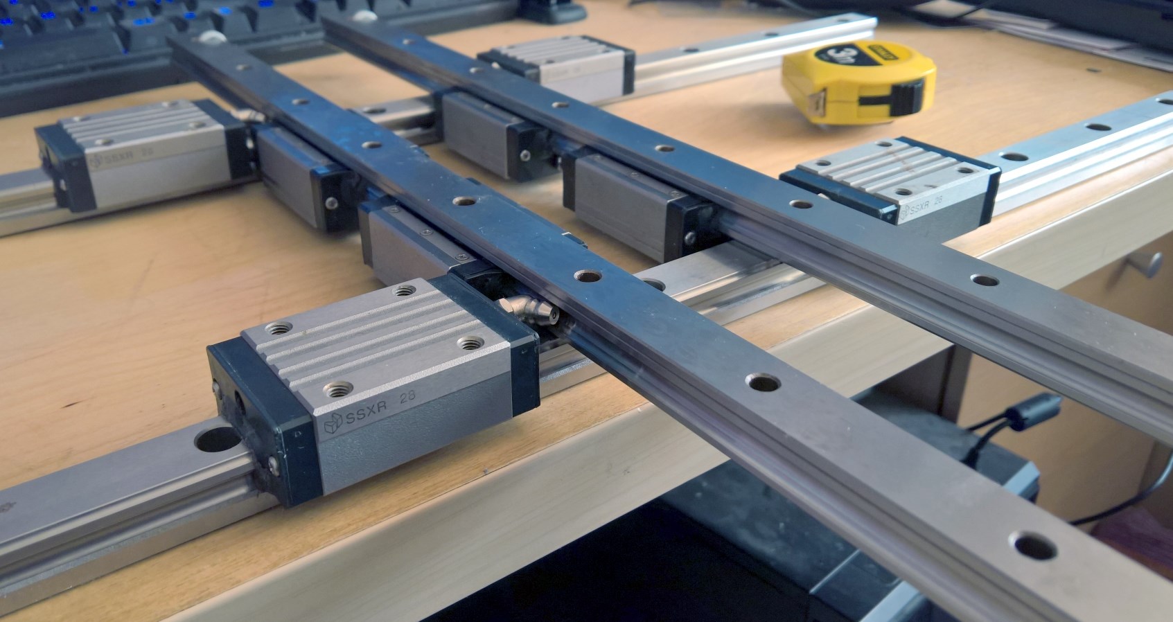 What you could do is slip pairs of linear blocks on to two pairs of linear rails, lay two rails on top of 2 rails at right angles then slide the blocks around a bit and see where the metal of the Y and Z slides can fit in around it.