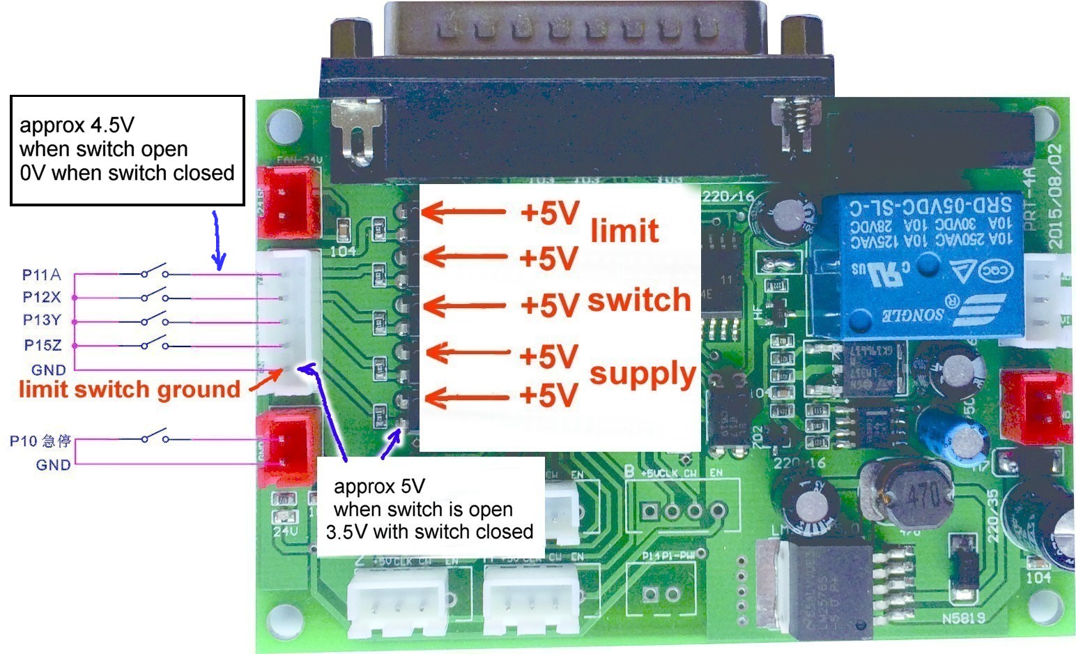 Hi John. There is a 24v which I think is for fan and 5v which is for the drivers. I've been playing around with it all night but still no joy. Just a silly question but should the switches be carrying voltage ? Because mine aren't