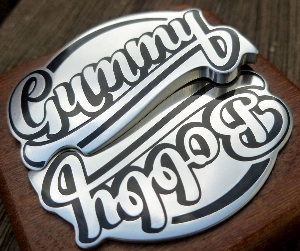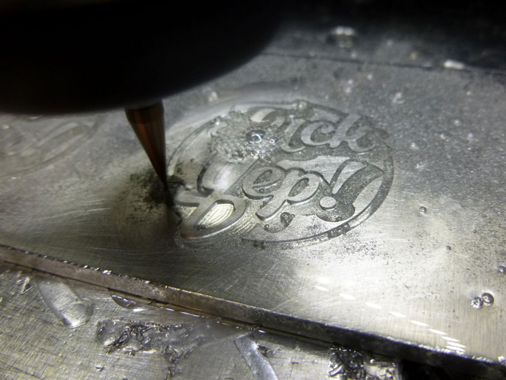 Okay, last of the badge posts - as no doubt you get the idea. This one was made as a commission - a birthday present, I think... Two nicknames, two badges that can be worn or displayed together in a plinth. Smallest cuts here were with a 0.2mm - I could have got away with a 0.3mm, but the two I had both broke on the job and I had to re-program using the 0.2mm (which also eventually broke). Heh, I can see why people don't do these for a living - once you've taken materials/tools etc. into account, along with what this kind of job is 'worth' to the buyer, well, you're looking at less than minimum wage for this... but I guess as long as you're making on other work it's still enjoyable to do - trouble is you need to give 'em away at the end..!