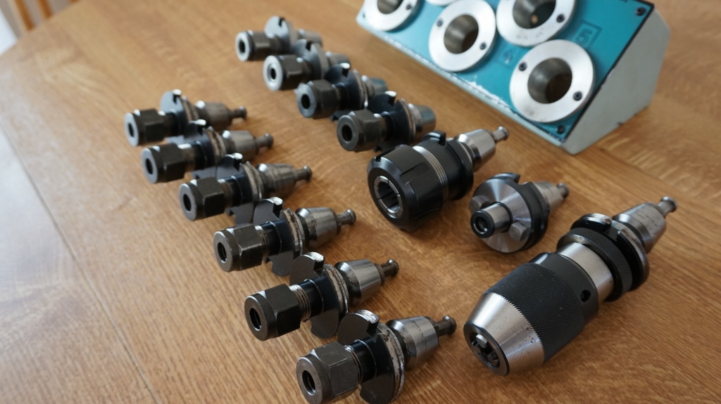 All tooling is included with the sale; 10 standard DA200 collet holders and 2 brand new Coventry tool holders (ER32 collet and 16mm Face mill holder) there is also a Jacobs’s holder with quick change chuck. There is a 5 position rack for tool holders. There is a large selection of DA200 Collets from 2mm to 10mm (30 collets in total). The standard Boxford vice has been re-ground and now works perfectly and is accurate, dowel pins have been added to make soft jaw repeats easy and there a few sets of soft-jaws which are included.
