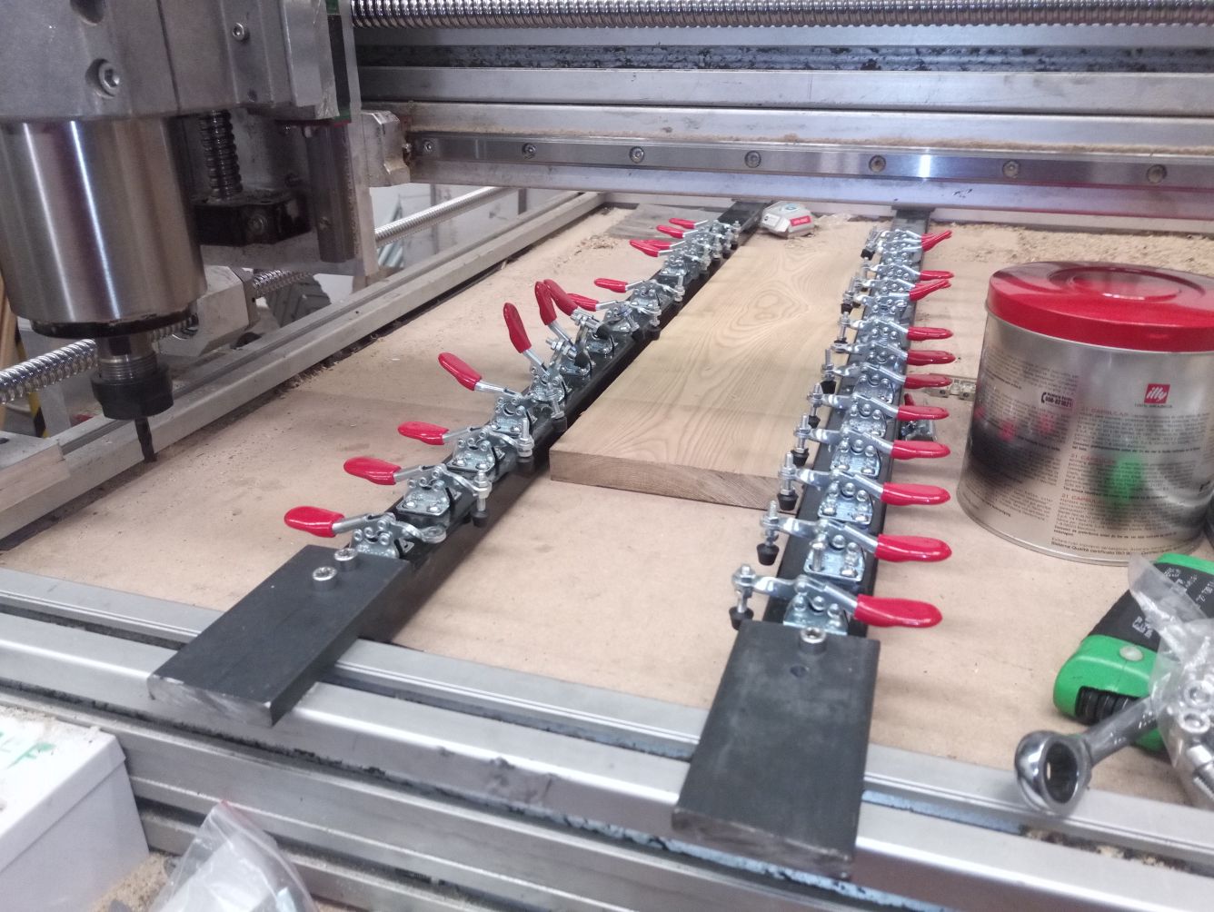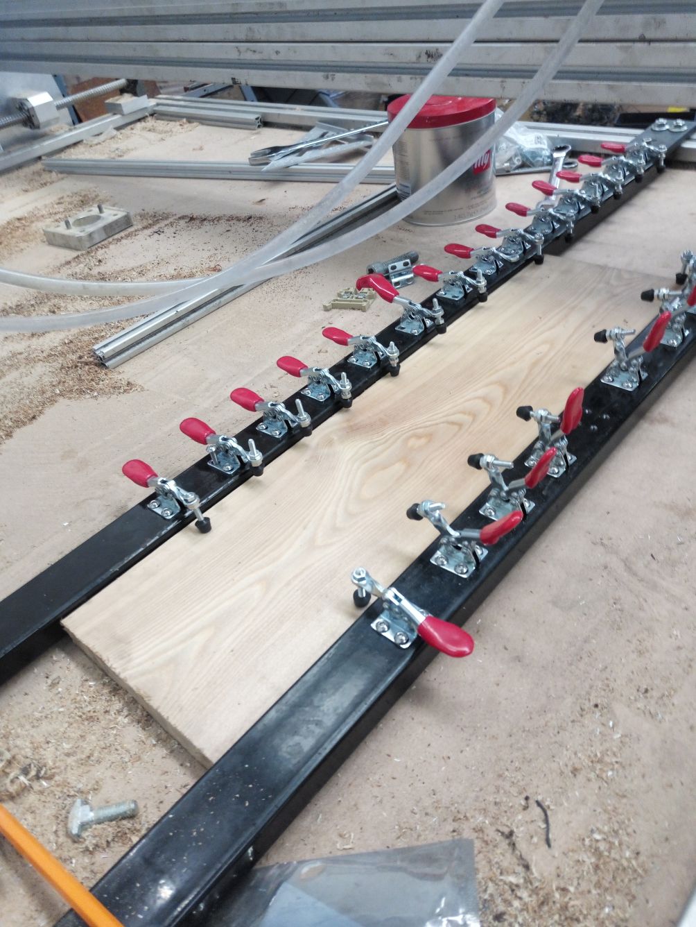 My first clamp I made was aluminium extrusion and it flexed when I ran the machine over 2m/min when cutting so I went a little OTT with box section steel and toggle clamps lol.