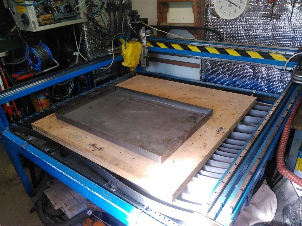 I'm not into business so probably only buy more if i need to cut a full sheet (unlikely at present.).Hopefully might make a few bob with one offs. Placed the original wood base for routing on top and you can also see the small "water table" which is what i do most of my cutting on.